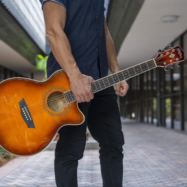 The EA15's Mini-Jumbo body is easier to play for those that find the larger Dreadnought & Grand Auditorium shapes uncomfortable. The EA15 MJ is suited for smaller players, young learners, or musicians looking for the more focused and intimate voice of a small bodied guitar provides. Built with a cutaway, access to the upper frets is a breeze.