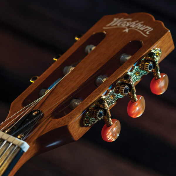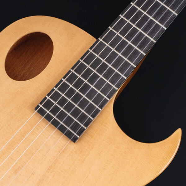 We gave this guitar a comfortable neck with narrow string spacing to accommodate players not used to normal wide spacing found on nylon stringed classical guitars