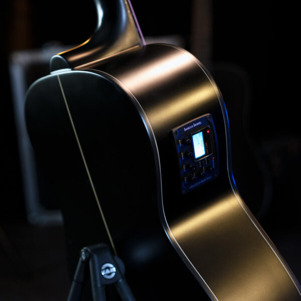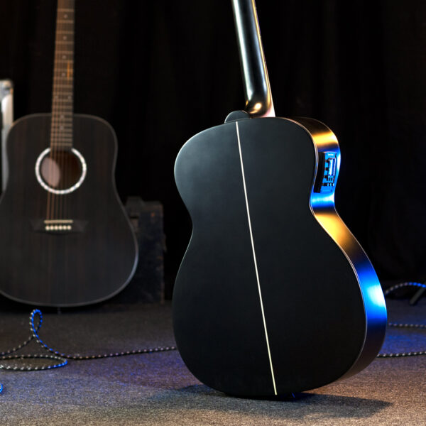 The folk style body on the Ebony FE is articulate and balanced, and the smaller size is comfortable to play all day or night.